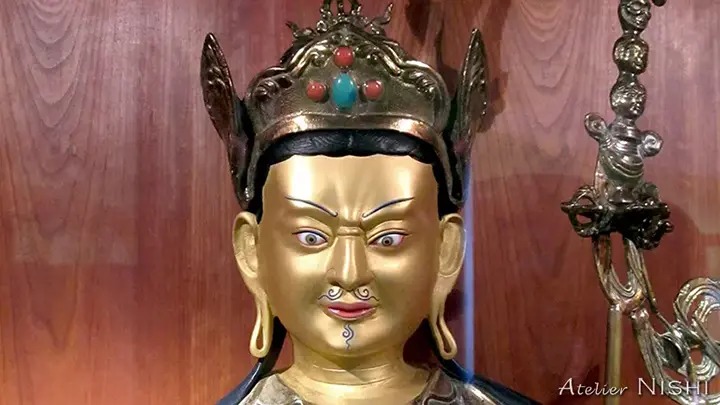 修復や再彩色の場合、元の表情を保存するか、新たに描き直すかは、修復開始前に仏像の状態をよく観察したうえで依頼者と慎重に話し合われます。※ここに紹介されている仏像はすべて仏師によって制作されたもので、彩色作業のみをタンカ絵師西 洋児が担当しました。
