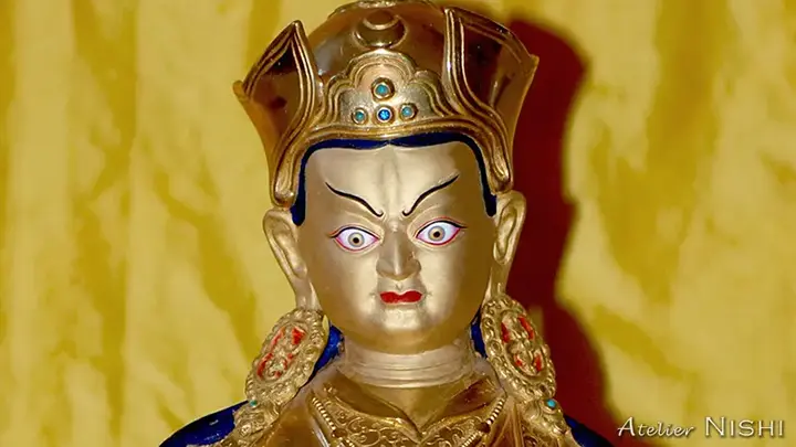 チベット仏教の仏像は、サイズや材質も様々で、丈夫な金属から、粘土や石膏のような壊れやすい材質で作られているものもあります。タンカ絵師の仕事のひとつとして、こうした仏像の彩色、または彩色面の修復・再彩色をすることがあります。