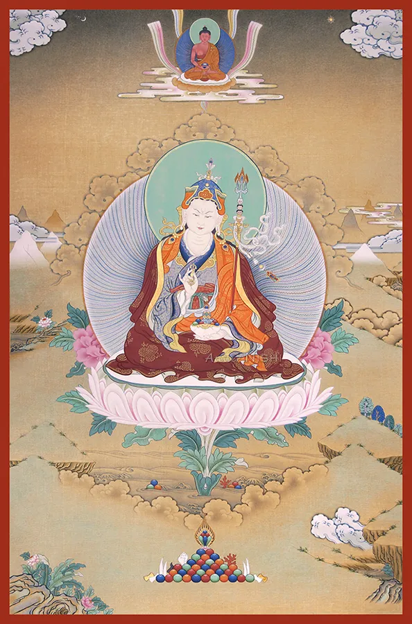 阿弥陀仏の光に祝福され、オディヤーナの地に顕れた偉大なる瑜伽の師グル・リンポチェ。