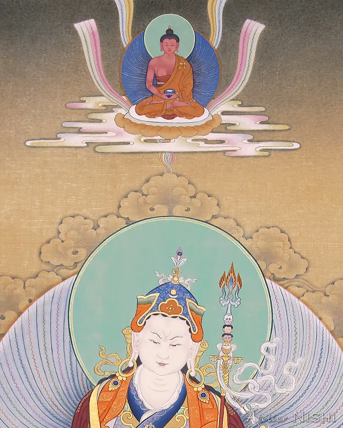 阿弥陀仏の光に祝福され、オディヤーナの地に奇跡として顕れた偉大なる瑜伽の師グル・リンポチェ。 深き智慧と限りなき慈悲をもって魔を調伏し、秘密の教えを雪の国へと授ける。