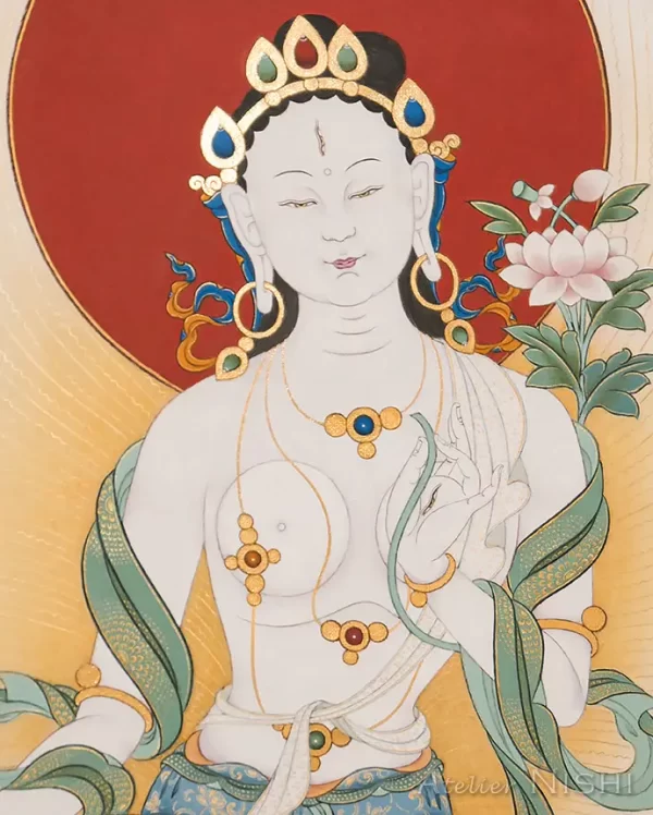 光り輝く長寿と慈悲の癒しの化身、ホワイトターラ。七眼をもって一切の衆生の苦しみと願いをその眼に映す。