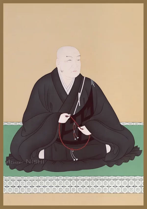 This work is a reproduction of the revered “Portrait of Rennyo Shōnin” (preserved at Higashi Honganji, Kyoto), depicting the 8th head of the Honganji temple and a major figure in the revitalization of Jōdo Shinshū (True Pure Land Buddhism).