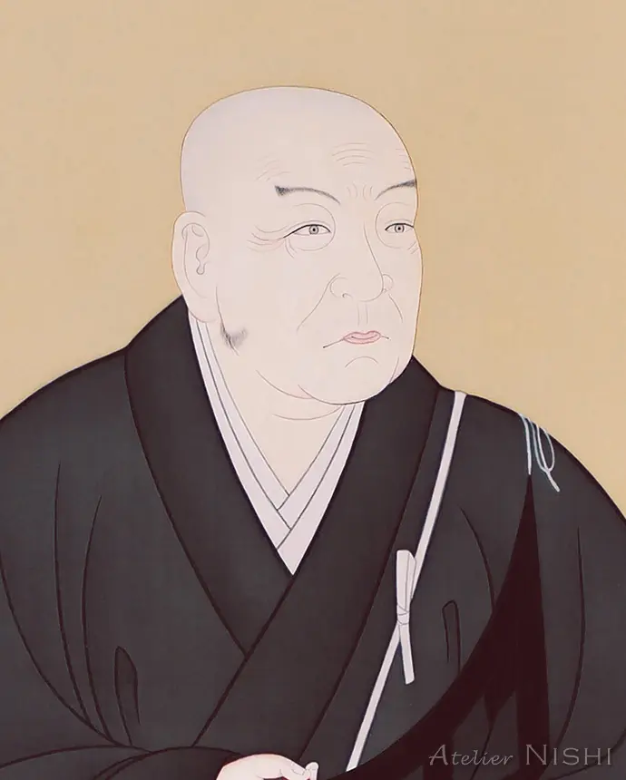 This work is a reproduction of the revered “Portrait of Rennyo Shōnin” (preserved at Higashi Honganji, Kyoto), depicting the 8th head of the Honganji temple and a major figure in the revitalization of Jōdo Shinshū (True Pure Land Buddhism).