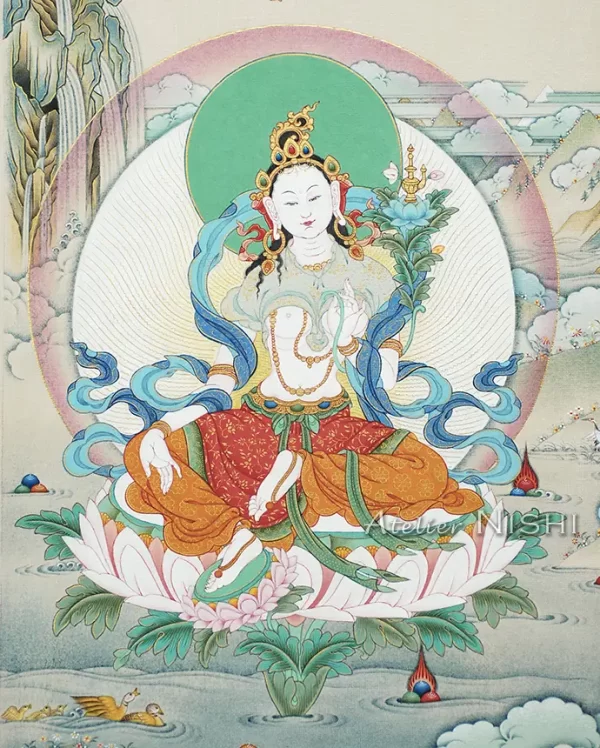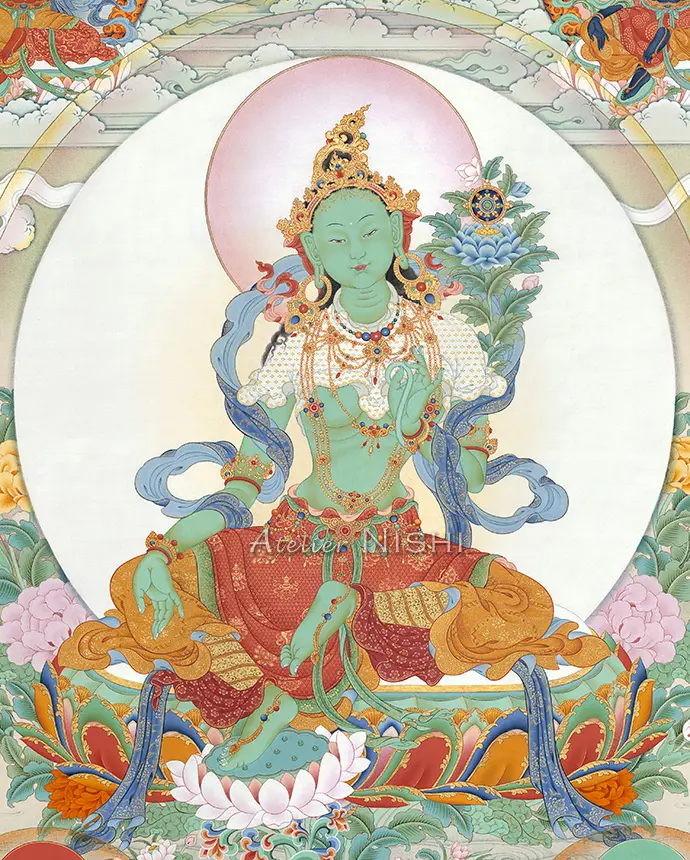 The luminous goddess of enlightened action emerged from the tears of Avalokiteshvara, the Bodhisattva of boundless compassion.