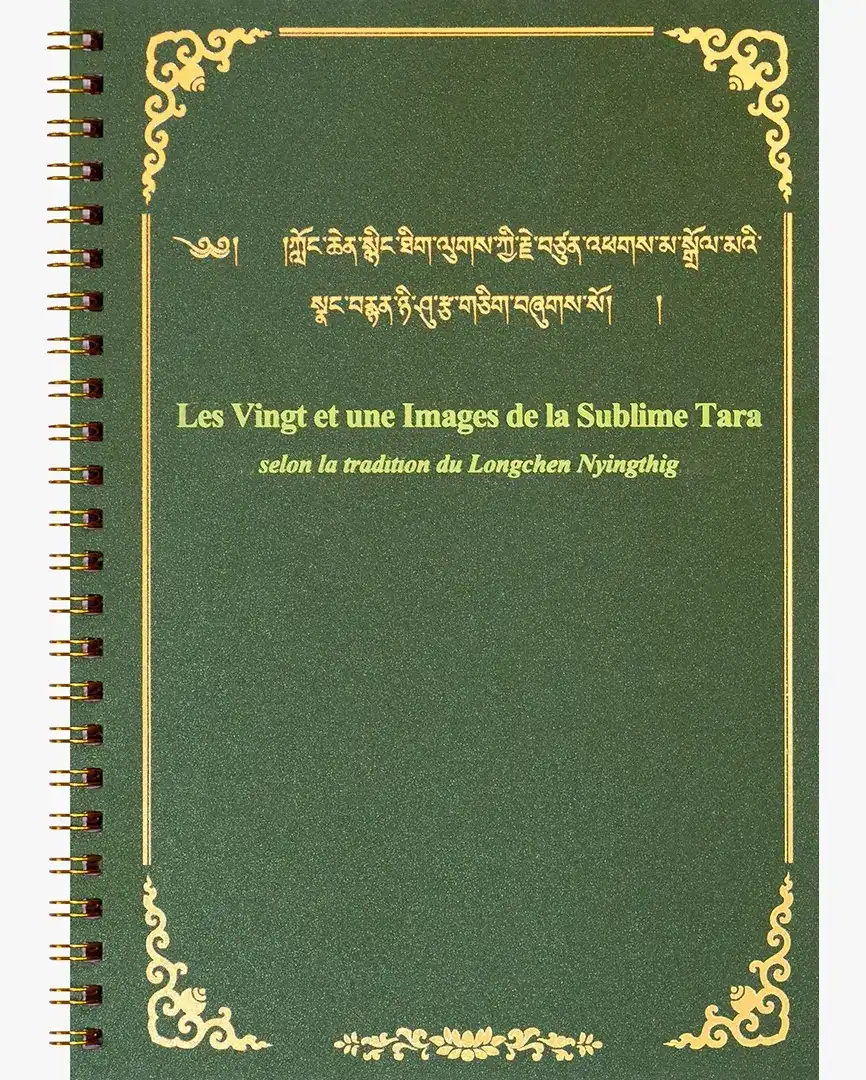 Un livret conçu pour enrichir votre pratique quotidienne de la méditation, présentant des images détaillées des Vingt-et-une Nobles Tara selon la tradition du Longchen Nyingthig, chacune accompagnée de versets de louange.