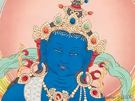 タンカは、その神秘的な美しさから芸術としても非常に高い価値がありますが、同時に瞑想修行の視覚的な支えとしての役割を持つため、そこに描かれる尊格の姿や持物は仏典に記された内容に忠実でなければなりません。