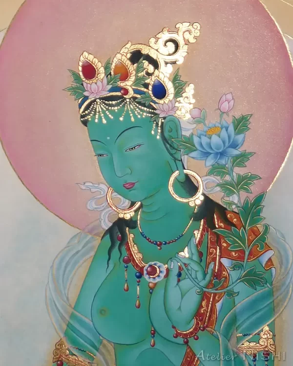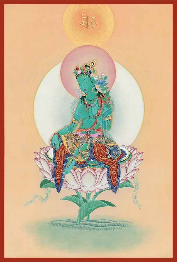 She who arises from the compassionate tears of Avalokiteśvara, Green Tara manifests as the embodiment of the enlightened activity.