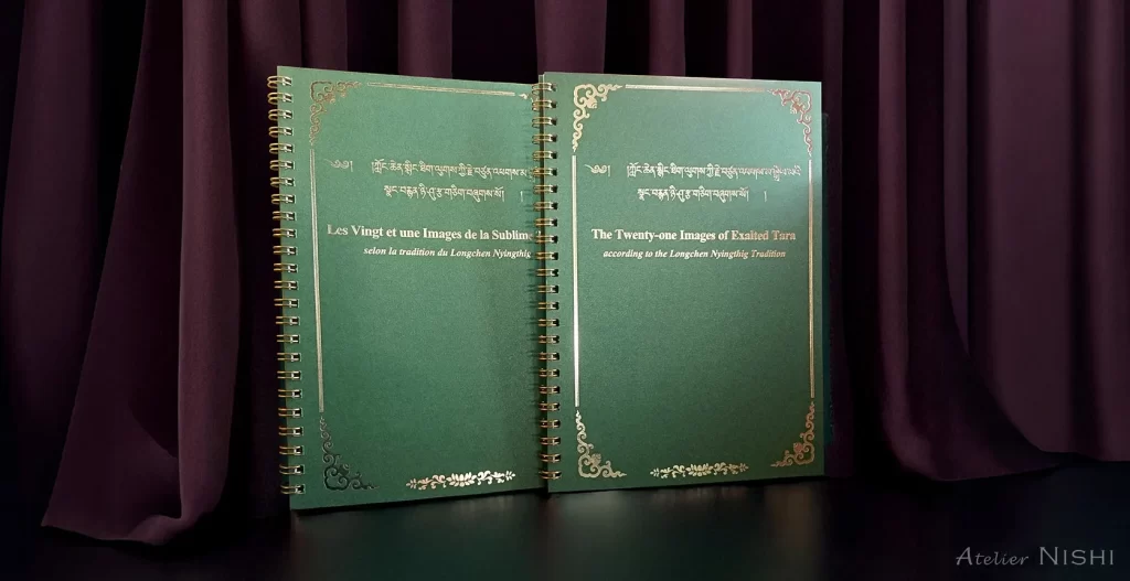 ターラー仏母への礼讃文を収めた経典『二十一尊ターラー礼讃』に登場する、ターラー尊の21の異なる姿をカラー図像として収め、それぞれに礼讃の偈を添えた小冊子です。