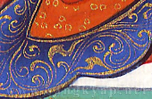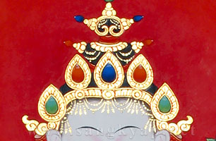 純金泥を塗り、瑪瑙で磨くことによって荘厳で美しく輝く宝冠部分。