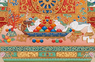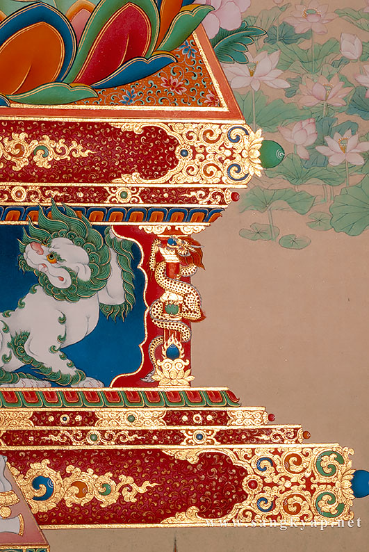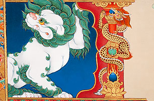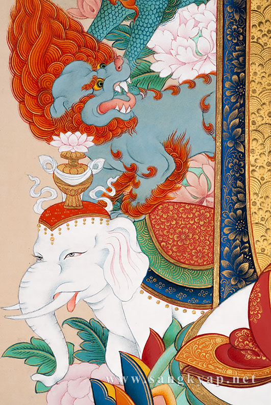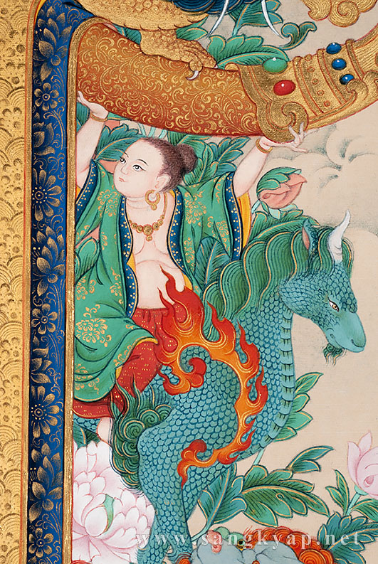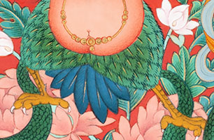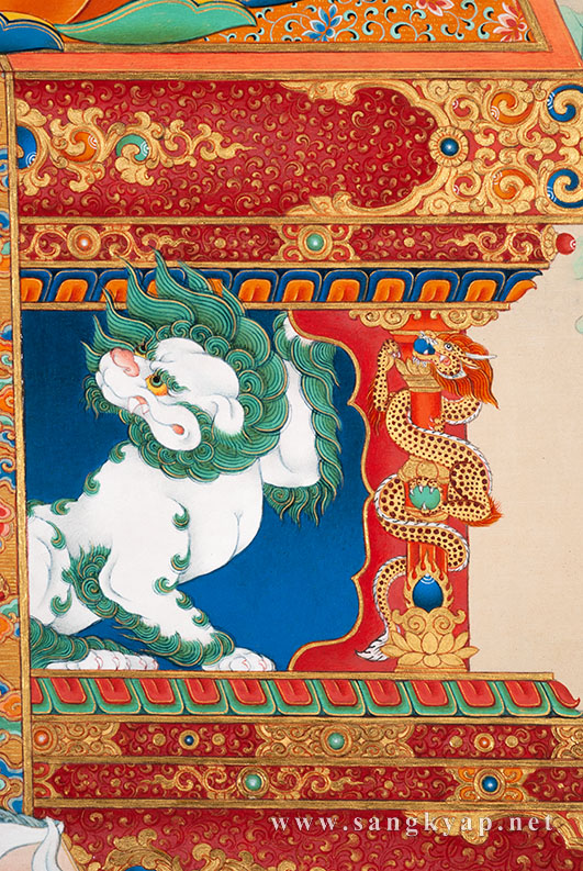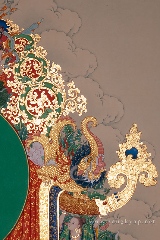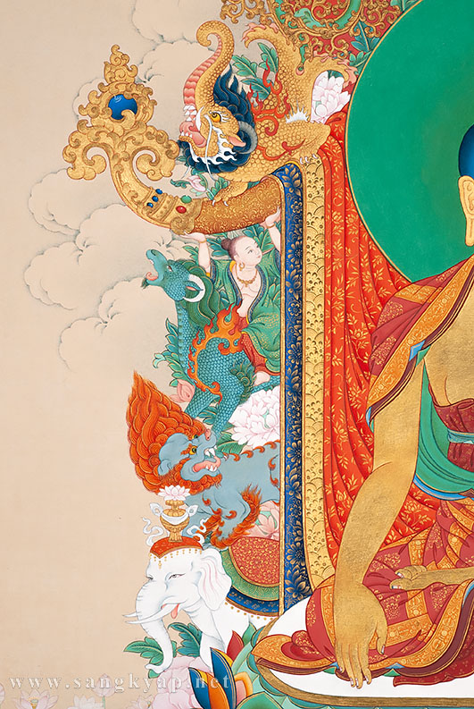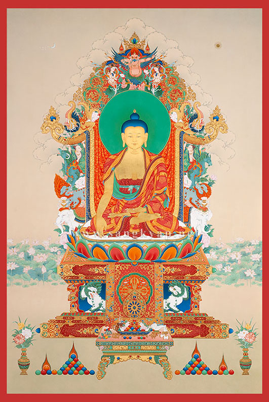 Tib:sha kya tu pa, sang gye Year:2021 Size:45×65.5cm Support:chalk on cotton Materials:natural mineral pigments, natural dye, earth pigments and gold