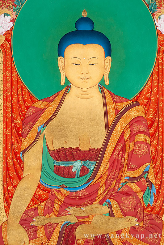 In this painting, the founder of Buddhism Shakamuni Buddha is depicted