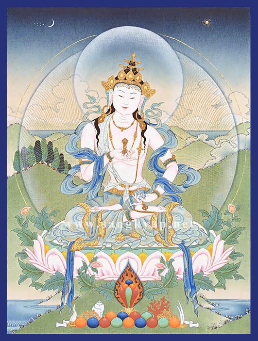 A small Thangka of the Buddha of purification, Vajrasattva. Vajrasattva