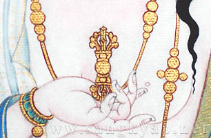 Thangka the garments of Vajrasattva in this Thangka are painted only with