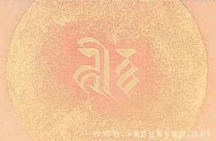 pieces of gold leaf is the seed syllable of Buddha Amitabha, "Hri"