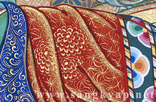 Tib:Dolma Year:2005 Size:31×47cm Support:chalk on cotton Materials:natural mineral pigments, natural dye, earth pigments, gofun, brass powder