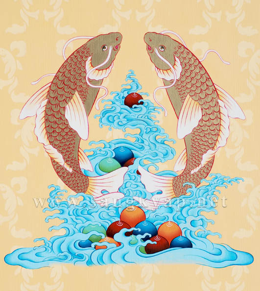 A pair of fish originally representing the two sacred rivers of India, the Ganges and Yamuna.