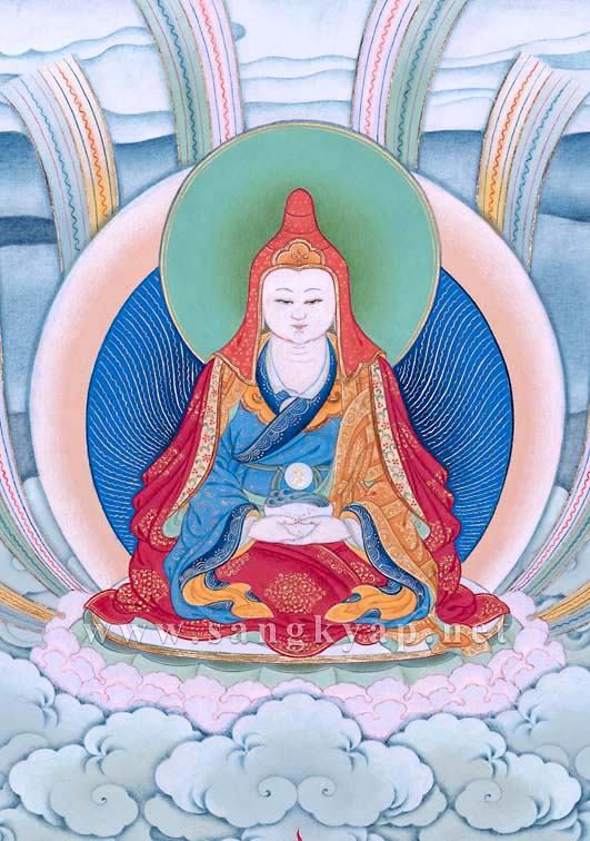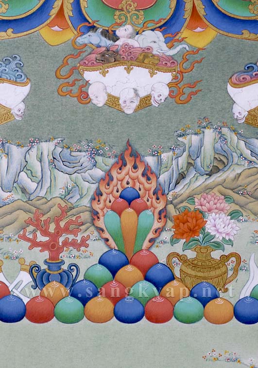 The skull cup "kapala" filled with amrita with a Lantsa script.