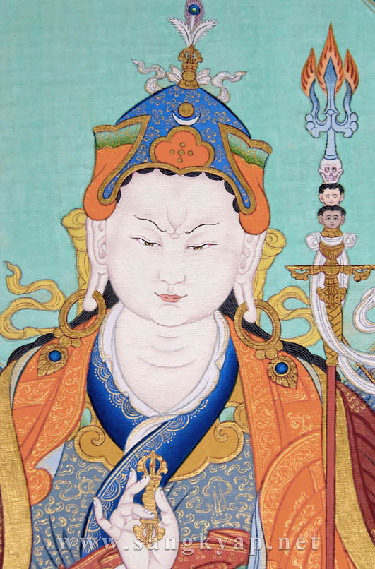 ウディヤナ王国、ダナコシャ湖に咲き出た蓮華の中から8歳の童子の姿で生まれたことから、”蓮華生”という意味を持つ”パドマサンバヴァ”と呼ばれ、チベットでは同じ意味の”ペマ・ジュンネー”、またはチベットに密教を伝えた偉大な尊師として深い敬意を表し”グル・リンポチェ”と呼ばれます。